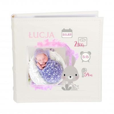 PERSONALIZOWANY ALBUM – to wyjątkowy prezent z okazji, roczku, urodzin. Pozwoli na przechowanie najcenniejszych wspomnień. Okładka zawiera zdjęcie maluszka, imię, ramkę oraz ozdobne grafiki.